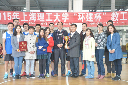 环境学院篮球队全体成员与校体育部部长及学院领导合影(2015年)
