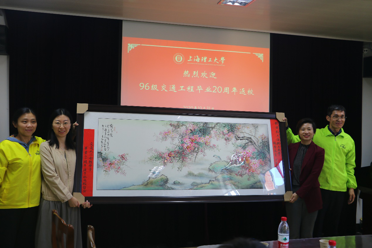 当天下午,我院首届毕业班,96级交通工程班集体返校,举行了毕业二十周年主题座谈会。二十年相聚再忆同窗求学时光,会上校友既重温了昨日故事,追寻青春芳华,又再续了浓浓的爱校之情。班级全体同学还为母校捐赠了国画作品,会后各位校友便一起参观了校史馆, 一同回顾了母校114年来的历程。