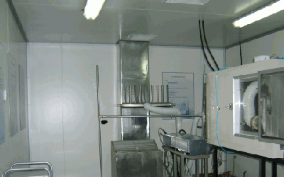 该洁净室净化系统为高效净化系统,若采用上送下回气流组织,最高可以达到ISO14644规定的1级洁净度。洁净室有两套冷冻水系统,一套冷冻水系统提供新风机组所要的冷量,另一套冷冻水机组提供干盘管的冷量。为了实现洁净室有关参数的控制和测量,室内,回风夹道内,新风管道的入口及出口布置有温湿度测定,冷冻水进出水管道布置有温度测定和流量计。所建洁净室可进行洁净室相关的科学研究,还可进行层流与乱流等性能优化的创新试验。