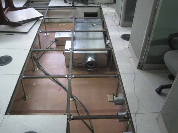 下送风环境研究实验室有模拟办公大楼的内区和外区变风量地板送风形式组成,它是建筑热回收变风量系统节能实验室的末端环境室,建于2007年。