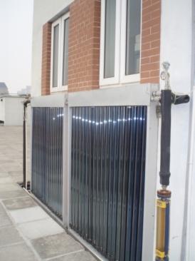 热器与建筑的一体化,比以电加热为辅助热源的太阳能热水系统节电70%以上,本技术拥有六项专利,其中二项发明专利。