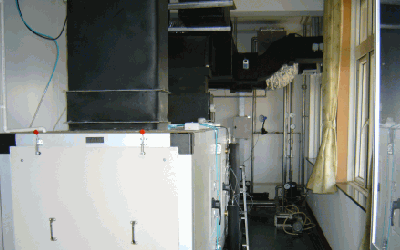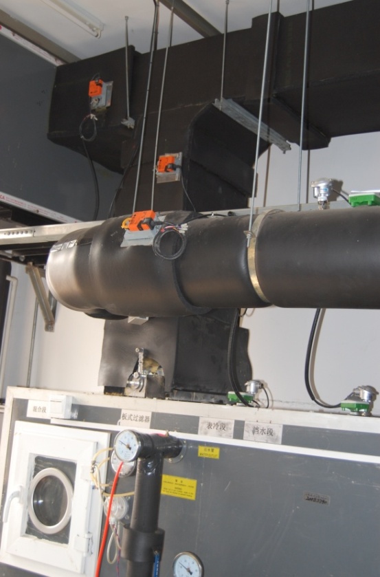 该实验系统建于2007年,是由集成多种热回收节能技术与设备的变风量空调热回收所组成的实验平台,系统末端服务于上送风与下送风两种送风方式的环境室,详见图13,其中下送风可见下送风环境研究实验室。