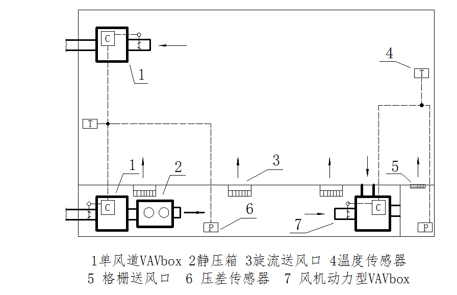 内区送风系统主要由单风道VAVbox、架空地板、均匀送风静压箱、旋流送风口及PLC控制系统组成,可实现多种形式的变风量控制,如架空地板的静压控制、可调送风口控制及VAVbox控制等。外区送风系统由串联风机动力型VAVbox、架空地板、格栅送风口及PLC控制系统组成,外区送风由内区架空地板的处理空气和室内回风的混合,通过格栅送风口向上送风,从而承担窗户和外围护结构的空调负荷,减少或避免外区对内区热舒适环境的影响,详见图18和图19。