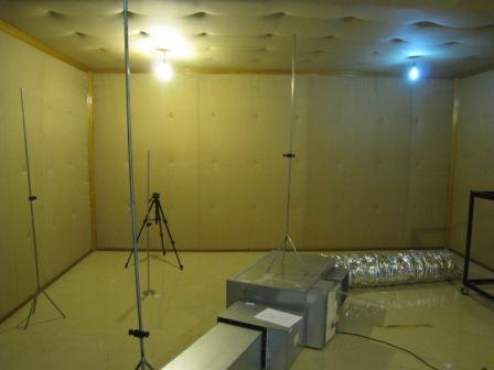 该系统建于2007年,面积40m2,实验室建设时根据中国国标GB6882(全球标准ISO3745 )《消声室和半消声室精密法》设计制造的半消声试验室用消声棉设计,实验室有效隔离噪声,本底噪声可达到20db(A),详见图22。