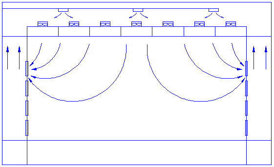 (b)上送侧回(第一排回风口)(c)上送侧回(第二排回风口)