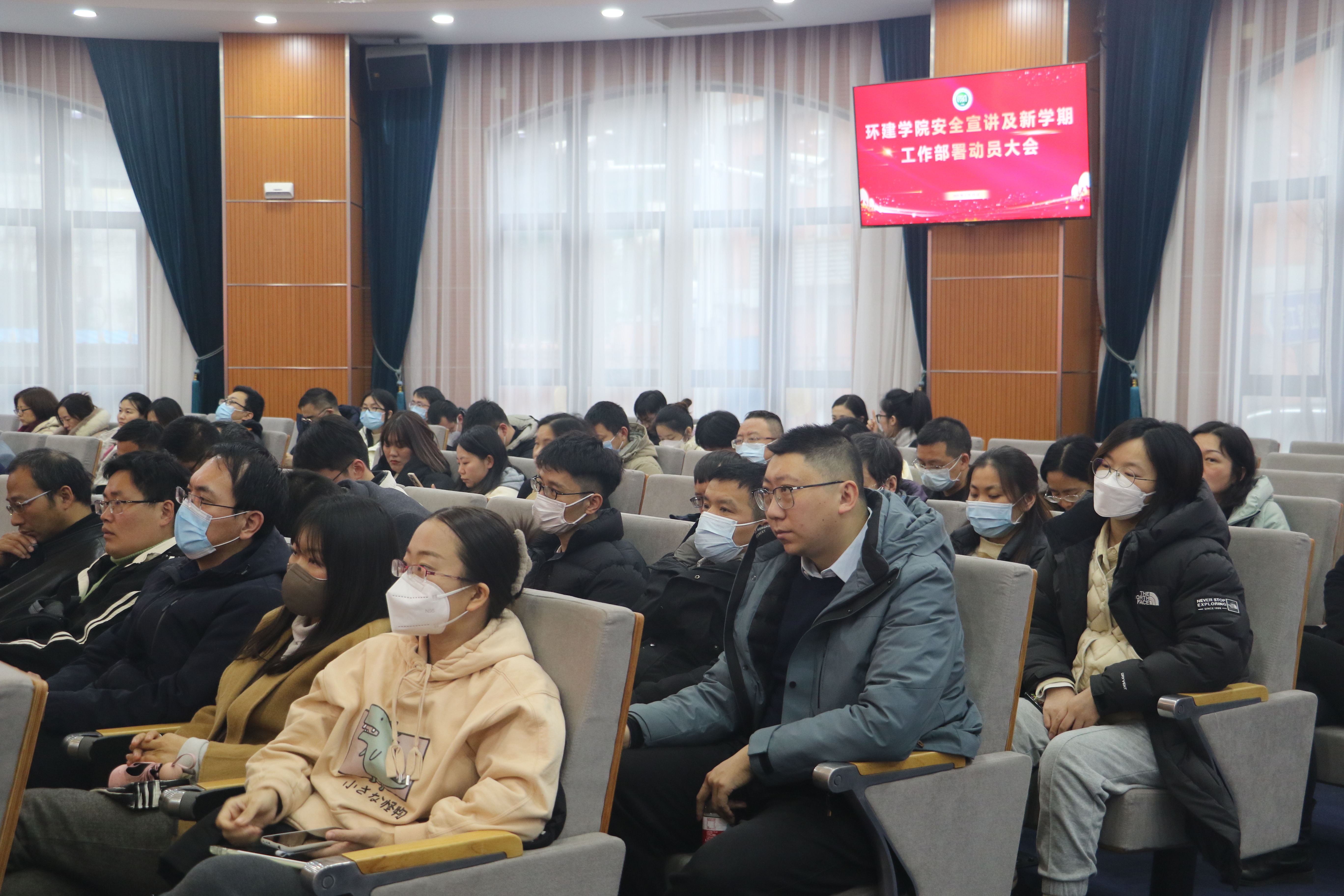 立足新起点,聚力谋发展。为进一步落实学校开学相关工作要求,2月23日下午,环建学院在先进大楼辅楼报告厅召开安全宣讲及新学期工作部署动员大会。学院全体教职工参加。会议由学院党委书记金晶主持。