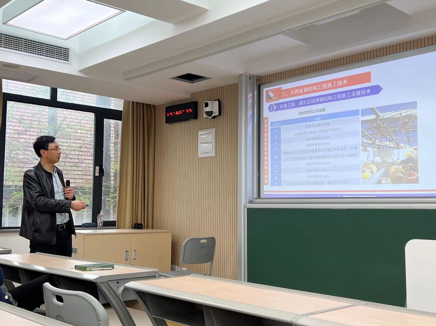 为提升新工科背景下土木工程系学生的就业优势,增强学生在人工智能快速发展时代对土木工程智能化技术的了解,4月4日土木工程系教工党支部依托“校企产教融合、协同育人”的学生培养新模式,邀请上海市机械施工集团有限公司副总裁、总工程师、教授级高级工程师贾宝荣来校为土木工程专业师生作了“大型复杂钢结构工程建造与智能化(含上海中心)”的学术报告。云顶集团4118网址副书记曹桂馥,土木工程系刘琼等多位老师与学生现场聆听了报告。会议由土木工程系副主任张菊辉主持。
