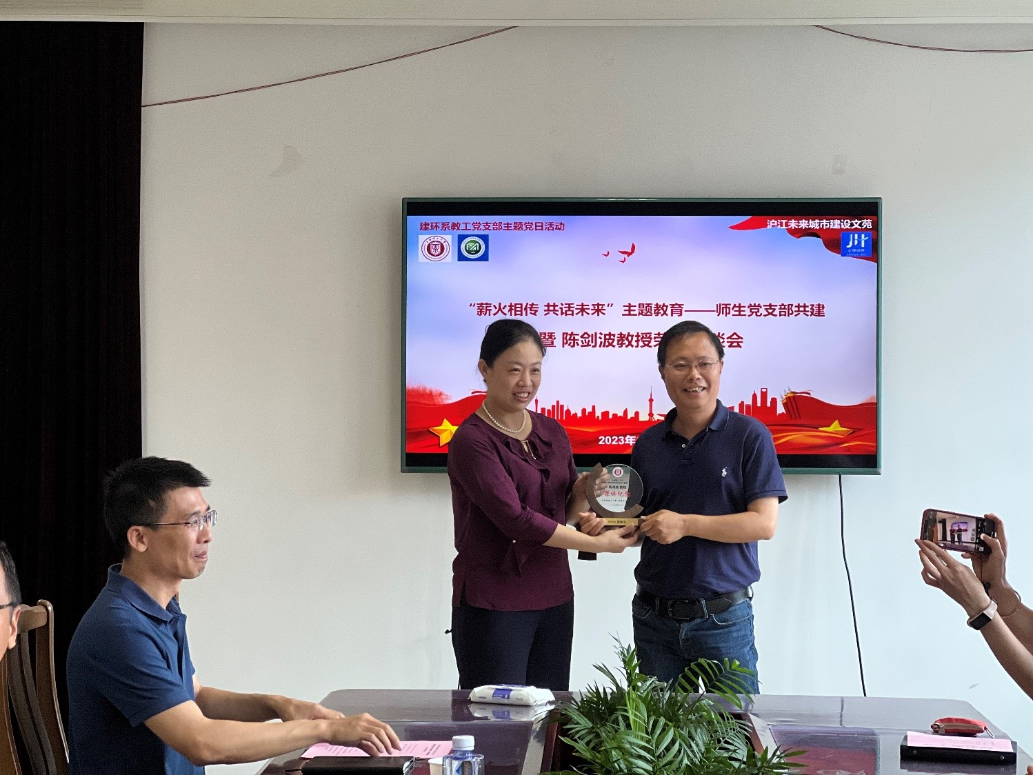 王丽慧教授作为代表赠予陈剑波教授荣休纪念礼物