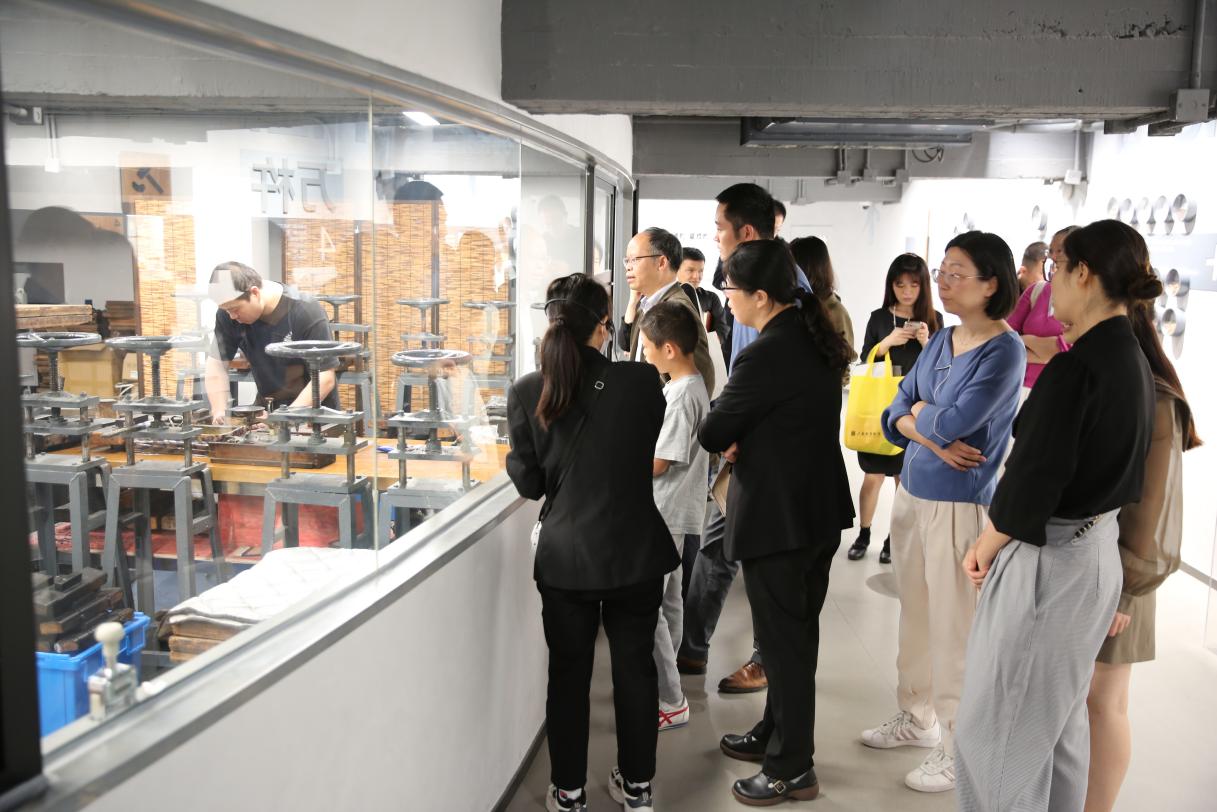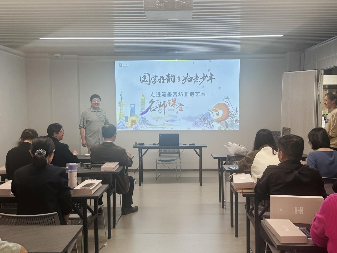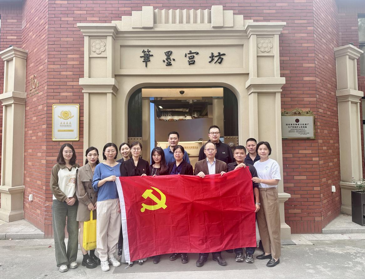 全体人员来到了笔墨工坊大厅,首先观看了《华夏笔墨,千秋传承》裸眼3D影片,感受中国传统文化的魅力。在讲解员的带领下,参观了点烟区域、制墨区域、翻晾区域、描金区域、墨模宝库和上海笔墨博物馆,观摩“最长的狼毫笔”和“最大的如意墨”,现场“直击”非遗技艺,制笔制墨的全流程让党员同志们近距离感受了古老工艺的精妙。除了参观,全体人员还积极参与了非遗技艺的实践课程,在非遗老师的指导下,亲自动手体验传统工艺—墨锭描金,感受非遗技艺的奥妙之处。这独特的体验将金粉与墨锭完美融合,创造出了属于自己独一无二的艺术作品。这一过程不仅让党员同志们领略到了传统工艺的精湛技艺,更激发了他们对传统文化的热爱与探索欲望。