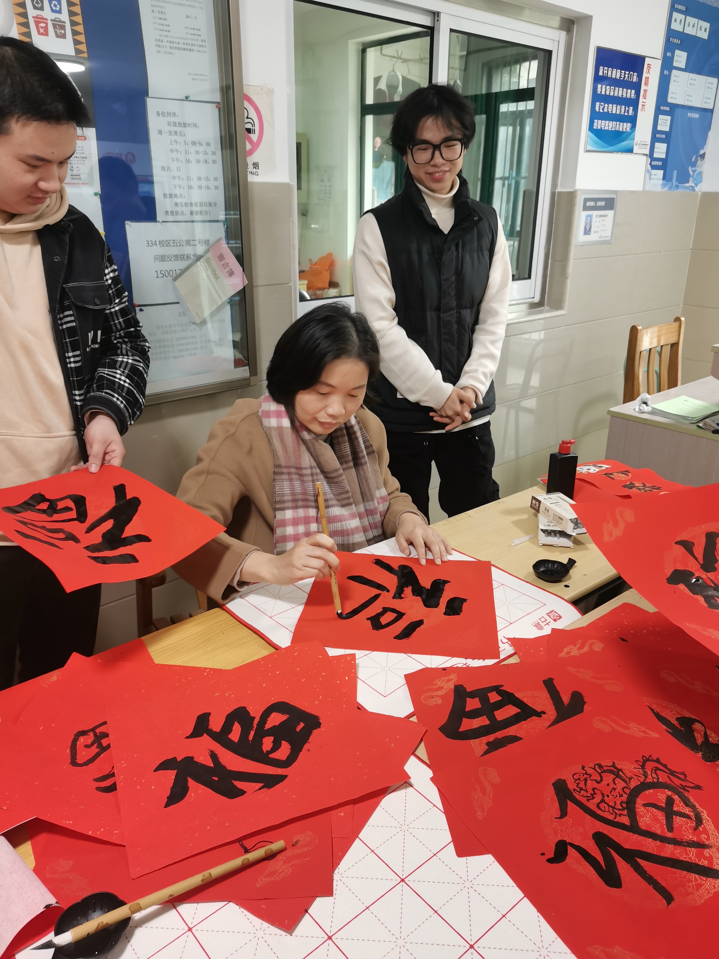 本次“迎元旦送福字”活动的开展,不仅让同学们感受到了中国书法的艺术魅力,体验了浓浓中国年的味道,增强了楼栋同学之间的凝聚力,同时也积极发挥了学生社区育人的积极作用,为校园文明建设贡献力量。站在新年的起点,同学们意气风发,斗志昂扬,在感受祖国日新月异的巨大发展中,也对自己提出了更高的要求。新的一年会有新的希望,让我们不忘初心,努力奋斗,张开腾飞的翅膀,向着更高的目标飞翔!