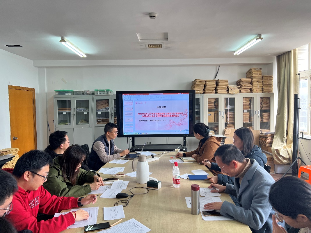 在讨论环节,支部党员分享了学习心得和将理论学习运用在工作中的实例,大家表示,通过学习,对如何在新的历史条件下和日常工作中坚持和发展中国特色社会主义有了更加清晰的认识。支委会最后号召支部党员们要以此次主题教育为契机,持续深化学习,在日常科研和教学中努力发挥党员先锋模范作用,不断推动专业和学科高水平建设,为社会和行业发展培养高质量人才。