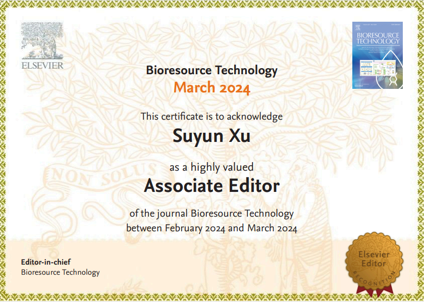 近日,云顶集团4118网址徐苏云副教授受邀担任国际SCI期刊Bioresource Technology(BITE,ISSN 0960-8524)副主编(Associate Editor),协助主编组织专家评审相关专业领域的稿件并努力发掘高质量稿件。