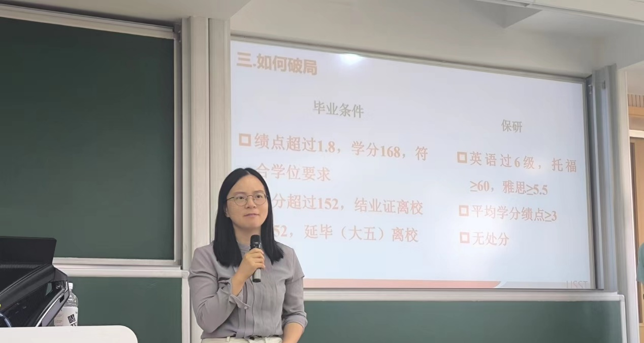 会议开始,张晓东老师深入分析了2021级环境工程专业学生目前的现状,以“我能顺利毕业吗?”、“”我还差多少学分?、“我一边重修,一边准备考研(考公),准备好了么?”等7个问题,让学生通过自问自答的方式来思考自己所面临的处境。并进一步对准备考取研究生和考公的同学发出“你的成绩单拿的出手么?”、“你有什么创新成果?”、“你了解导师想招什么样的学生?”等“灵魂12问”,期望引起学生们的重视和思考。最后,通过多个案例以及2024届环境工程本科毕业生就业去向等信息详细介绍了毕业要求,鼓励学生积极争取保研深造,倡导师生共同努力,端正学习态度、营造积极向上的学习氛围。