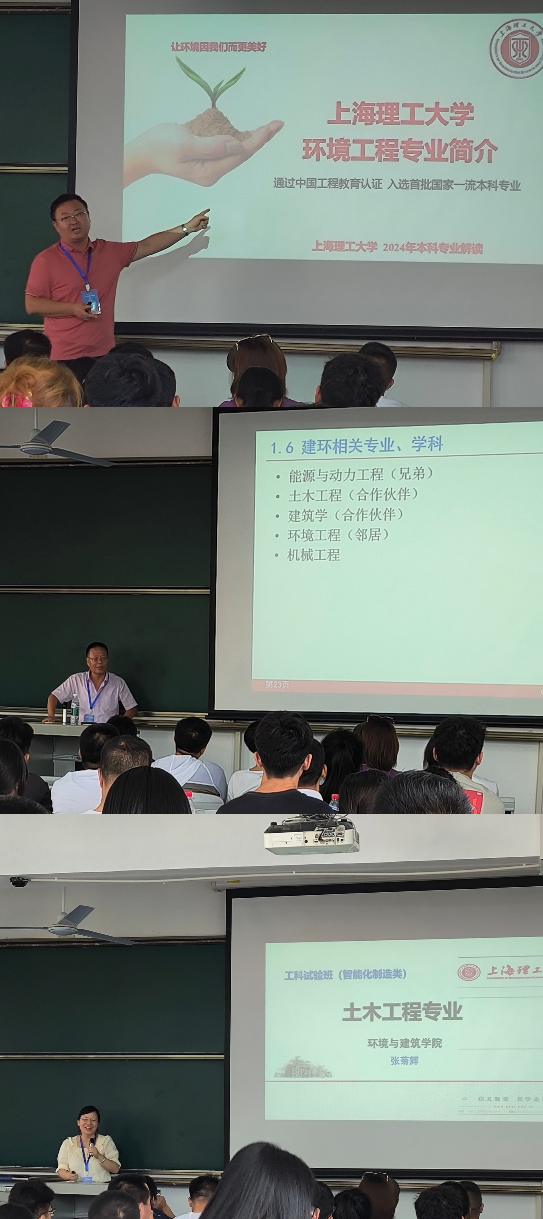 随后,环境工程专业张晓东教授、建筑环境与能源应用工程专业于国清教授和土木工程专业张菊辉教授分别聚焦各自专业,结合专业使命、专业特色、行业前景以及就业状况等方面,依次为大家介绍三个专业的相关情况并为新同学及家长答疑解惑。