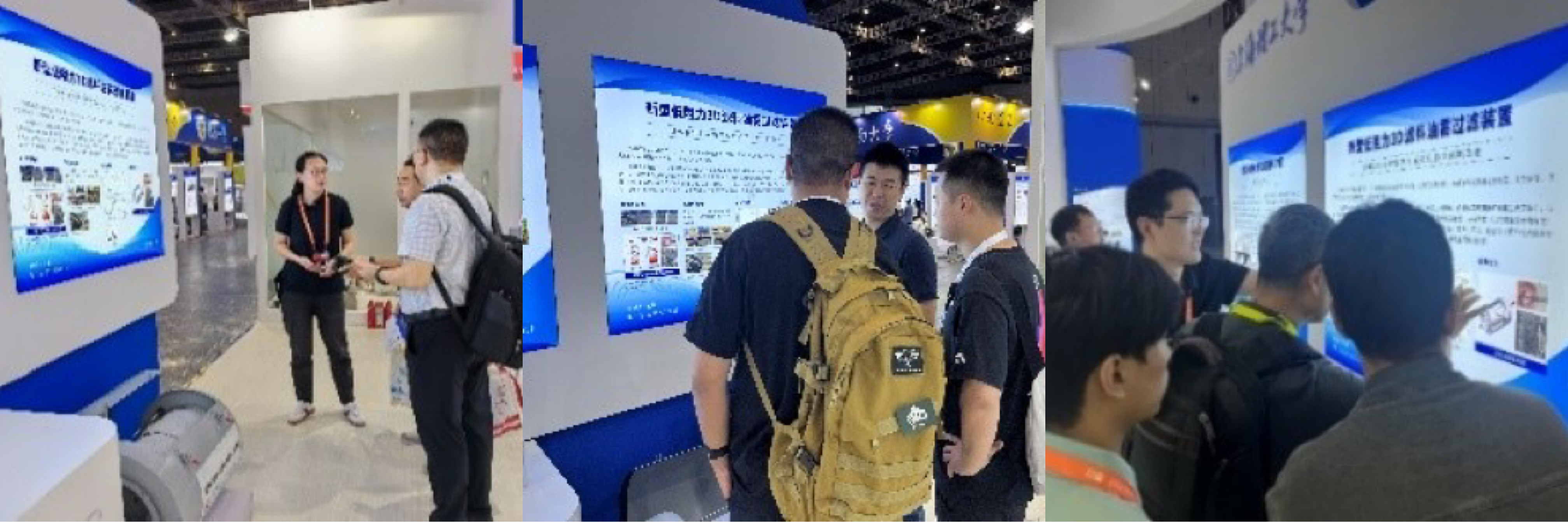 云顶集团4118网址的师生们在现场热情地向参观者介绍了这款新型三维过滤装置的研发背景、技术特点和应用场景