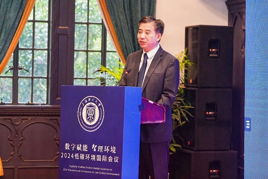 岳海洋副校长代表主办方向海内外专家学者致以热烈欢迎和衷心感谢。他在致辞中指出,全球环境问题日益严峻,低碳发展已是国际共识。科技进步推动人工智能逐渐融入生活,为环境治理带来新的机遇和挑战。本次会议紧扣当前环境领域的热点和前沿问题,期待与会专家深入探讨数字化、智能化与绿色化的融合,为全球低碳治理贡献智慧与力量。
