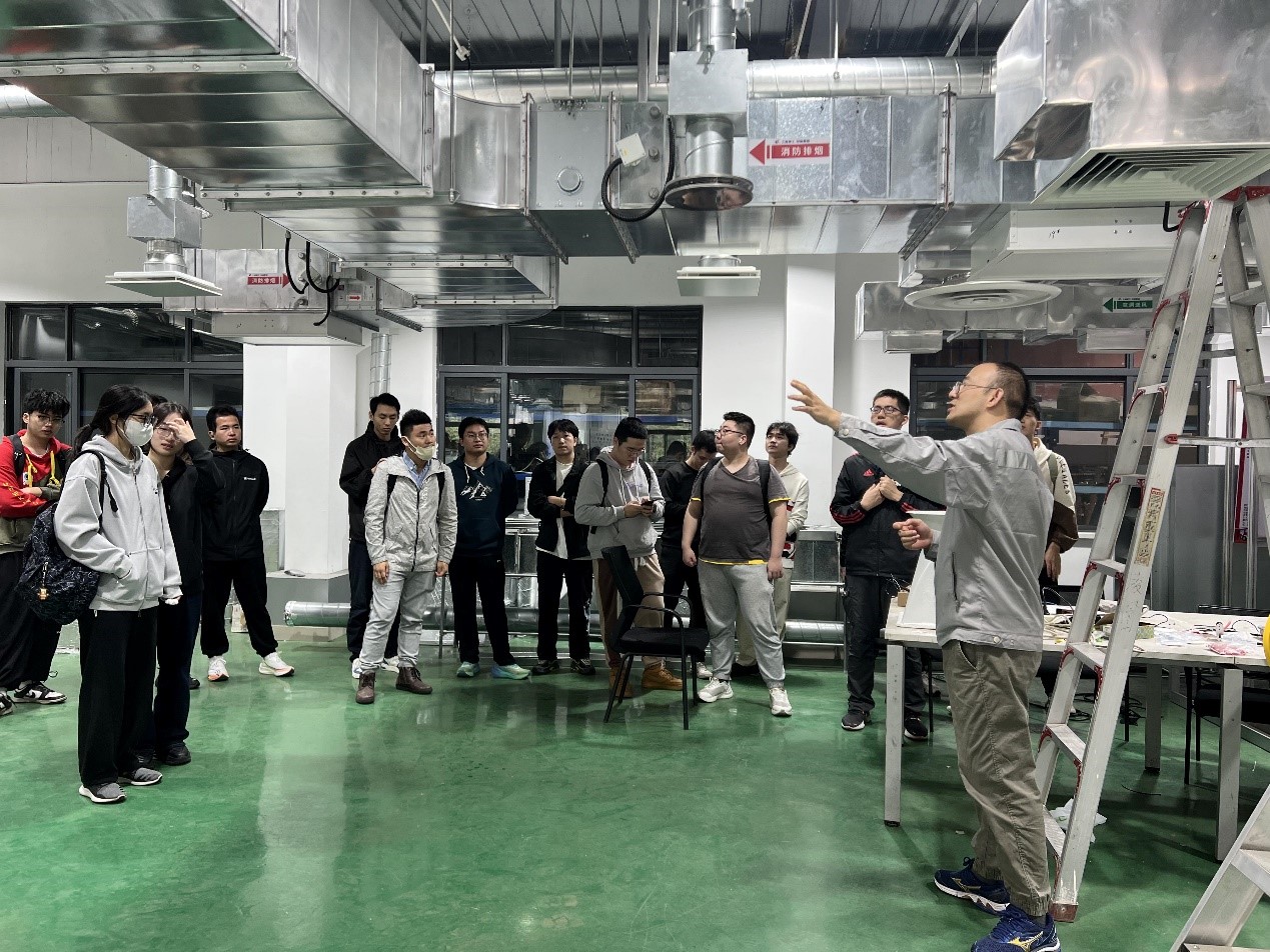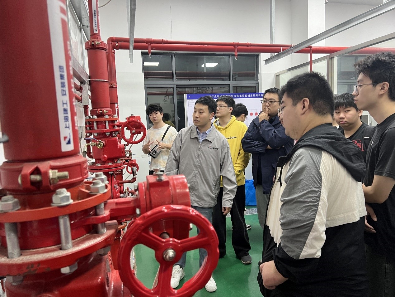 在上海建工安装集团实训基地,四位带教工程师分别对基地的变配电系统、暖通空调系统、消防系统进行了介绍和讲解,并鼓励同学们上手实操,使同学们将建筑设备自动化、建筑电气、空调工程等多门专业课的理论知识与实践结合起来。