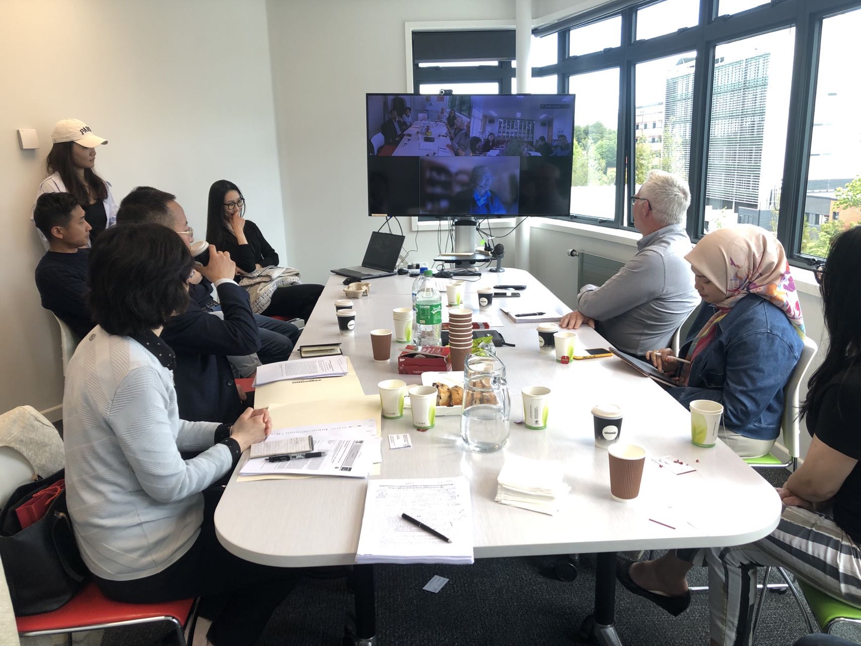 针对两校共同感兴趣的研究生合作培养,双方项目的负责人Larry Bellamy、Wentao Wu、王海东就研究生培养方案设置、专业课程学时设置等细节进行了讨论。双方对下一步的具体合作事项达成初步共识,对互派研究生并获得双硕士学位的合作充满了美好愿景。
