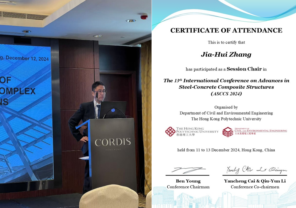 由国际钢-混凝土组合结构协会(ASCCS)主办,香港理工大学承办的第13届钢-混凝土组合结构研究进展国际会议(13th International Conference on Advances in Steel-Concrete Composite Structures, ASCCS2024)于2024年12月11日-13日在香港召开,来自世界各地26个国家和地区的241位专家学者出席了本次会议。我院张佳慧老师受邀作为此次会议组委会成员与分会场主席参加了此次会议,并做主题报告。