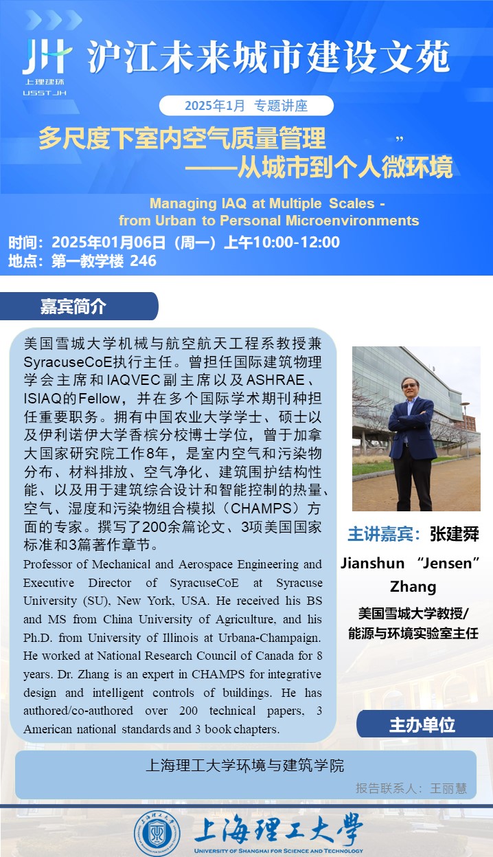 学术讲座:多尺度下室内空气质量管理 ——从城市到个人微环境
