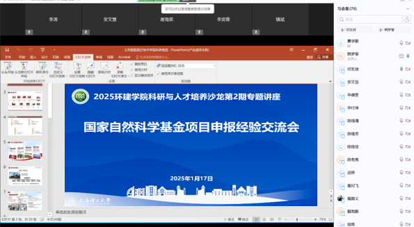为助力教师提升国家自然科学基金申报质量,云顶集团4118网址于1月16日和1月17日举办了2025年国家自然科学基金申报经验分享科研沙龙,线上线下近200位师生参与。本次沙龙由科研副院长王丽慧主持。