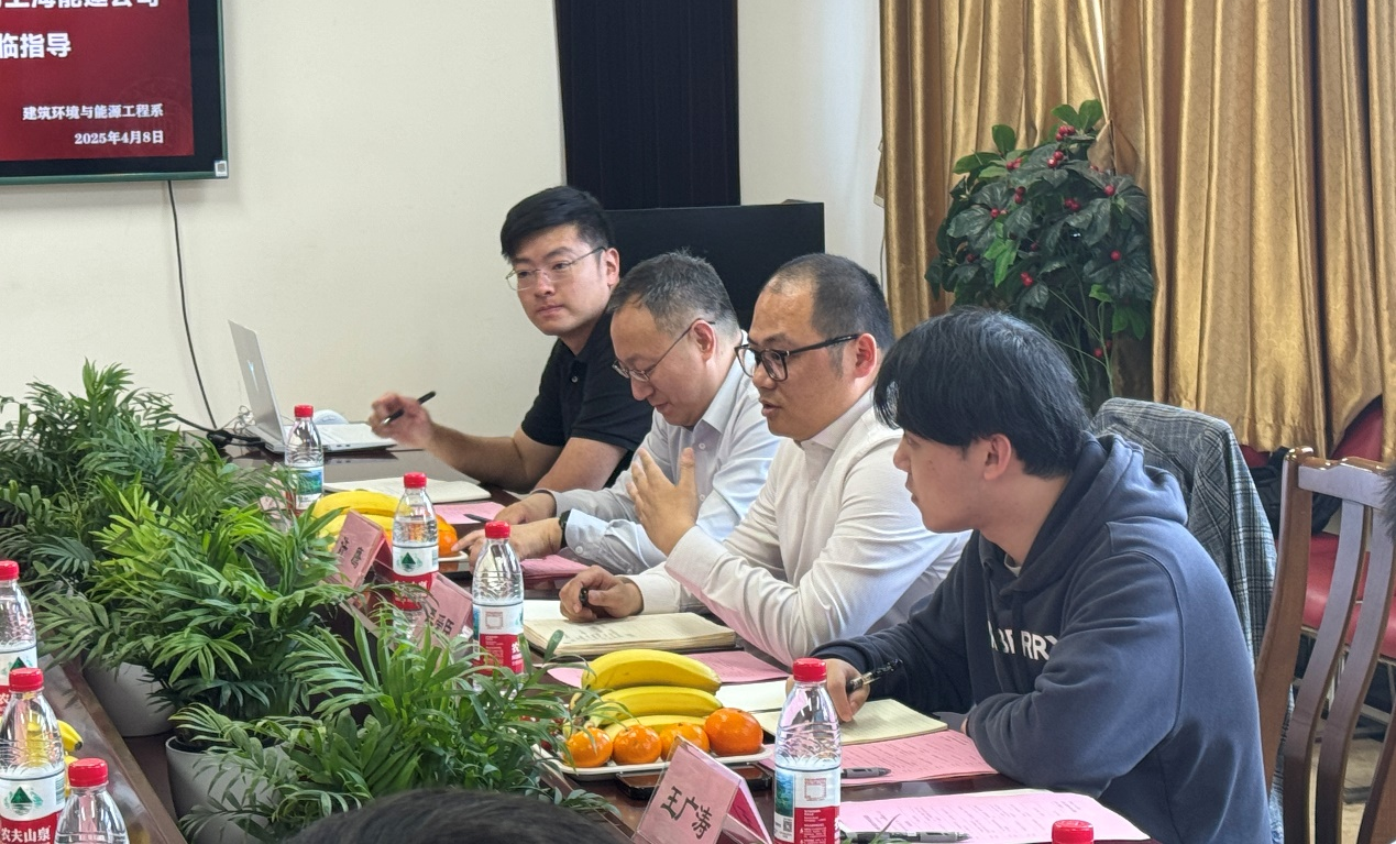 2025年4月8日,云顶集团4118网址建筑环境与能源工程系、环境科学与工程系与上海申能能源服务有限公司(以下简称“申能能服”)及其下属公司、上海能源建设工程设计研究有限公司(以下简称“上能院”)召开“双碳”技术创新交流会。申能能服下属张江供能、森兰外高桥公司副总经理吴爱臣、上海申能能源服务有限公司区供事业部项目经理黄虞文、张江高科技园区新能源技术有限公司项目经理陈申,上海能建热电院副院长许鹰及资深节能工程师王重超等出席会议,同时邀请能动学院的校级冷却技术知识服务团队及其产学研联盟秘书单位的代表参会交流。会议在环境学院306会议室召开,由建环系系主任王海东教授主持。