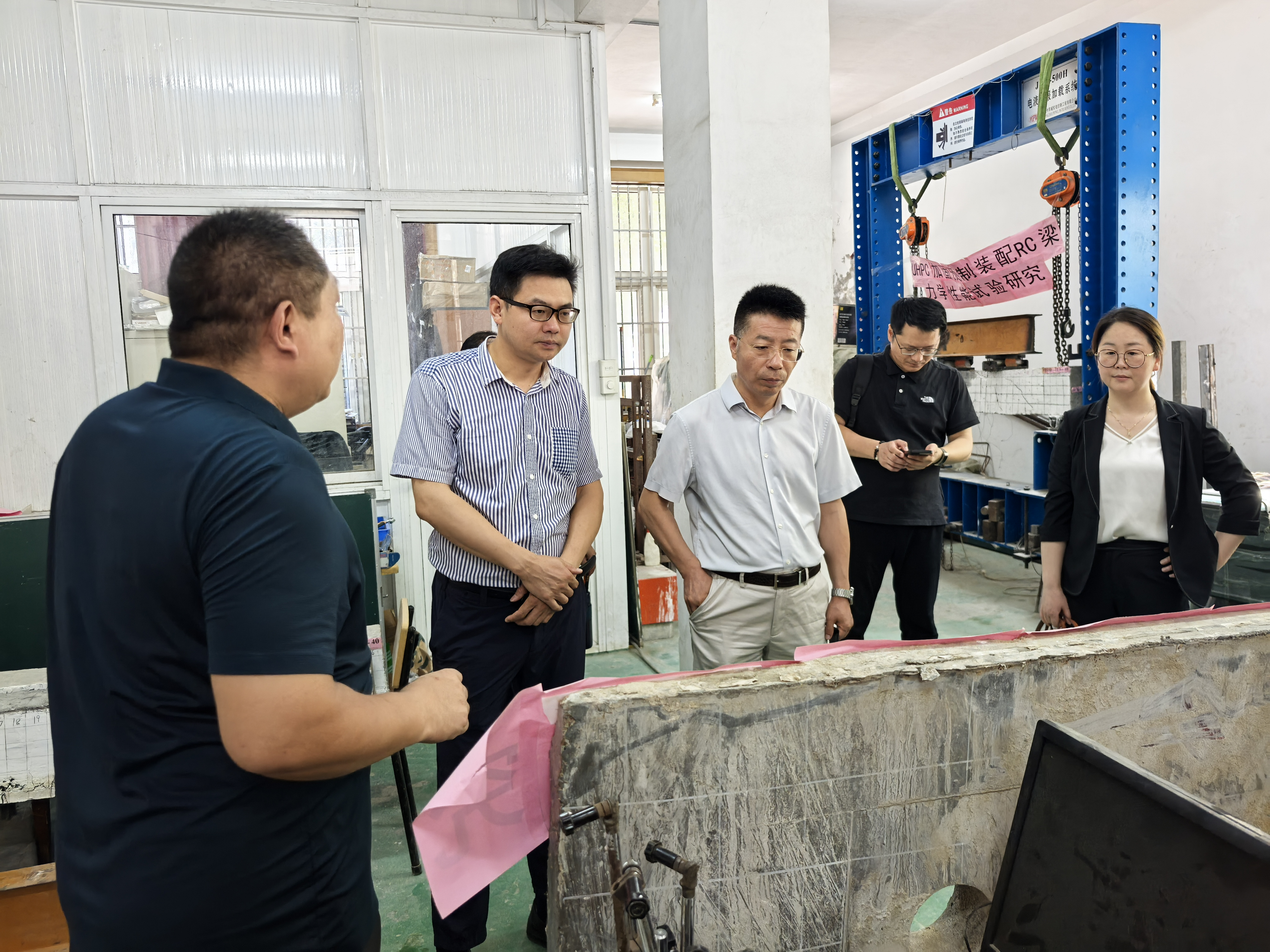 签约活动前,数字建造学院代表团在上海理工大学环建学院副院长饶平平的陪同下,实地考察了我院的结构工程与环境工程实验室,深入了解我院在城市更新、绿色建筑等领域的技术研发成果。