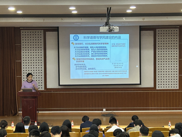 副院长王丽慧作科学道德与学风建设总动员。她以“坚守学术底线,涵养优良学风”为主题,结合国内外学术不端典型案例与科研诚信正面典范,深刻阐释科学道德的核心要义与学风建设的重要意义,号召同学们秉持求真务实的科研态度,严守学术规范,拒绝学术造假,以严谨的治学精神和坚定的学术操守,在科研道路上稳步前行,勇攀学术高峰。