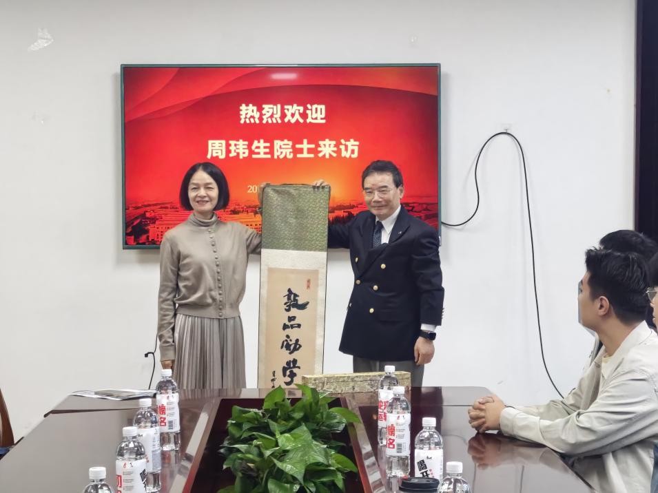 活动伊始,现场举行了简洁而庄重的书法作品赠送仪式。周玮生院士向上海理工大学赠送了精心创作的书法作品,字里行间饱含着对学校发展的殷切期望与美好祝愿。副校长蔡永莲代表学校接受赠礼,并表示感谢。她对周玮生院士的莅临表示热烈欢迎,高度赞誉了周院士在全球低碳发展与可持续发展领域取得的卓越成就,感谢其长期以来对高校人才培养与学术研究的支持,并希望在场师生能珍惜此次学习机会,深入交流研讨,学有所获。