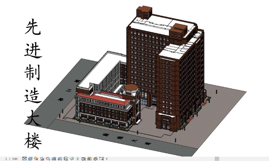 图1基于BIM技术的上理工先进制造大楼三维可视化建筑信息模型